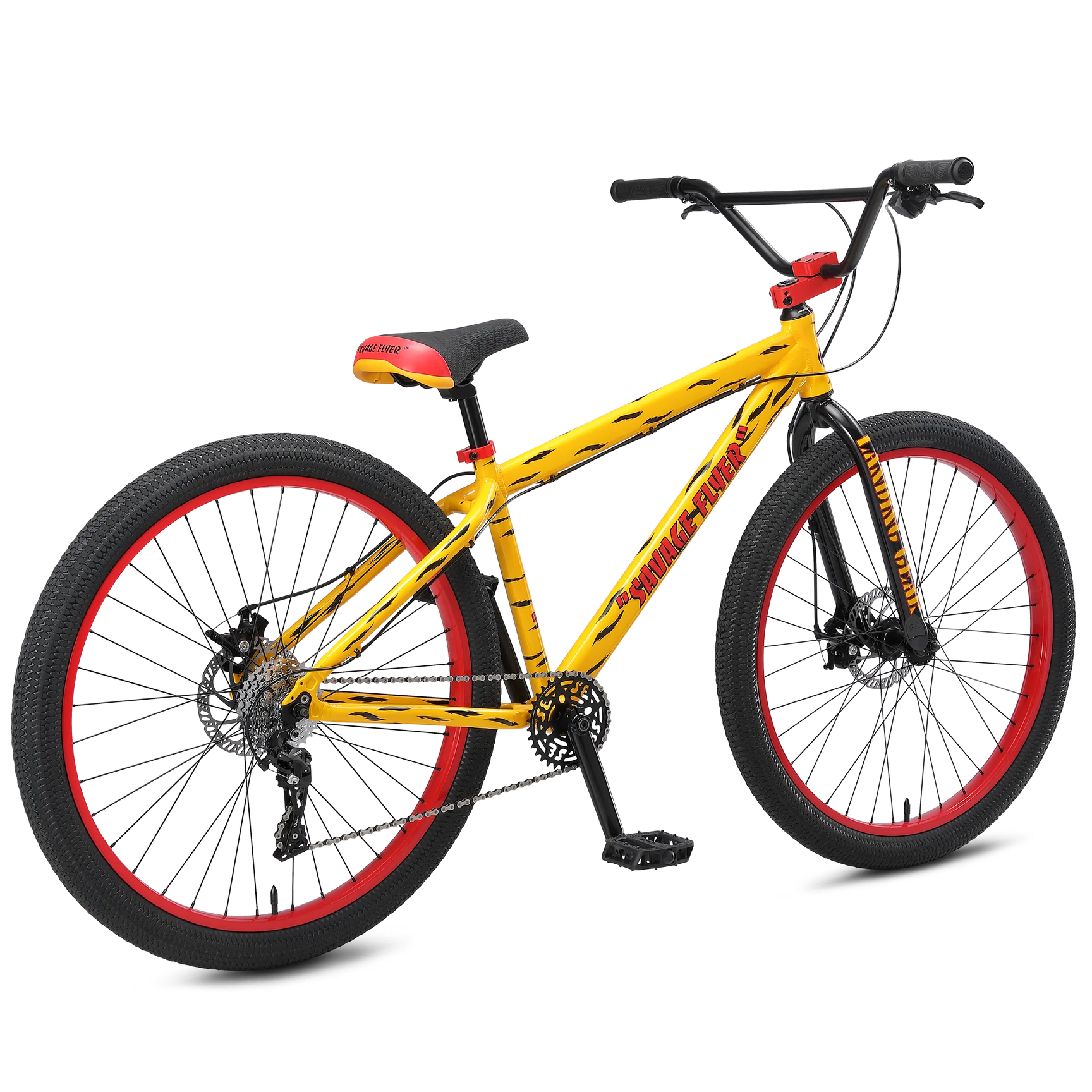 This bike is Savage! Literally. The all-new 27.5” Savage Flyer is a ferocious mix of everything you can ask for in a bike. It’s built with a sturdy 6061 aluminum frame & equipped with a mid-bottom bracket, internal headset, 10-speeds, and disc brakes. And the 27.5” x 2.3” Kenda Kiniption tires feature a complete wraparound diamond tread pattern for ultimate grip on those swerves. When you’re ready to go full bonkers, hop on the Savage Flyer.